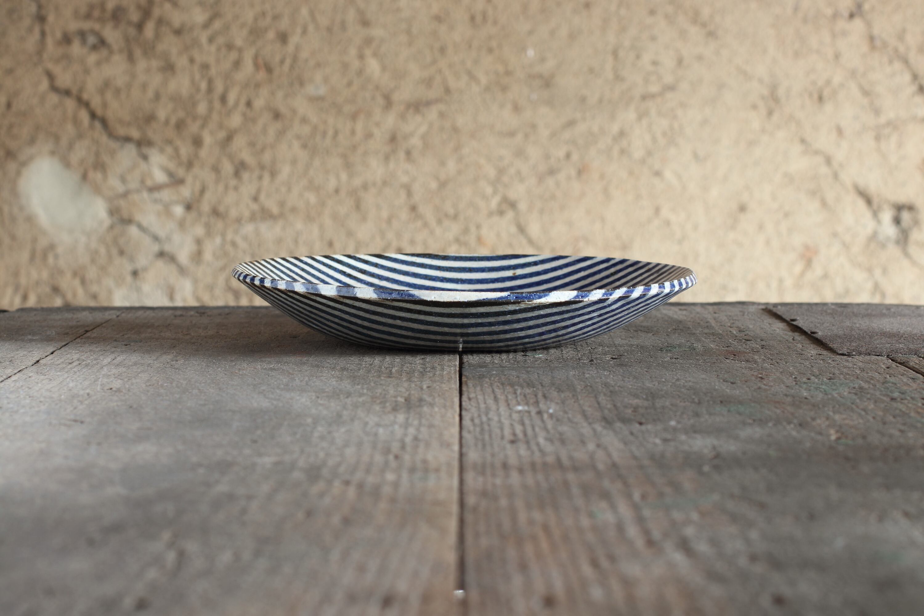 杉本さんの練り込みの器は石膏型で成形されるシンプルな形に、ストライプやチェックなどポップで現代的な模様が特徴。