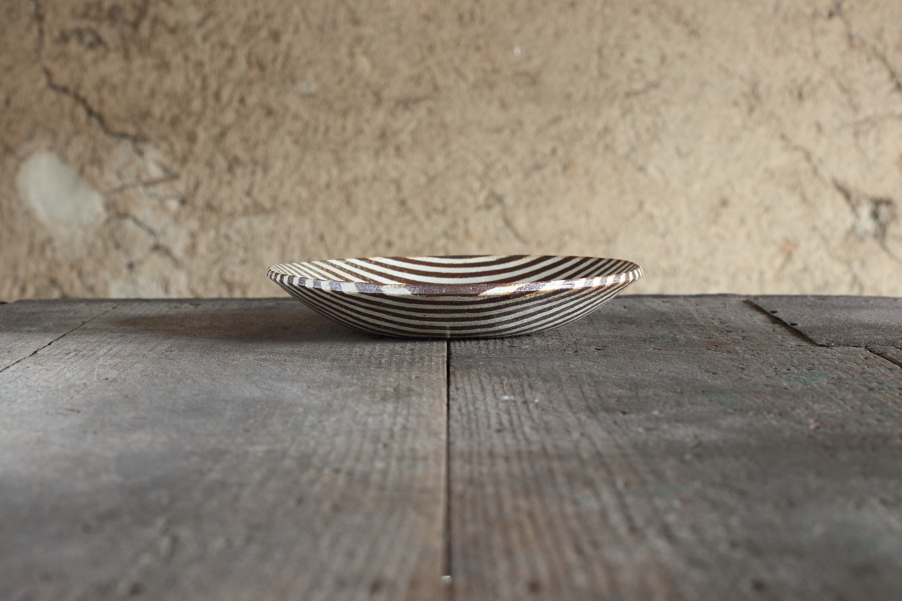 杉本さんの練り込みの器は石膏型で成形されるシンプルな形に、ストライプやチェックなどポップで現代的な模様が特徴。
